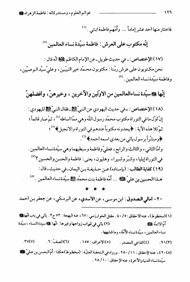 نام کتاب : عوالم العلوم و المعارف و الأحوال من الأيات و الأخبار و الأقوال ج11، سيدة النساء فاطمة الزهراء و مستدركاتها نویسنده : الشيخ عبدالله البحراني جلد : 1 صفحه : 126