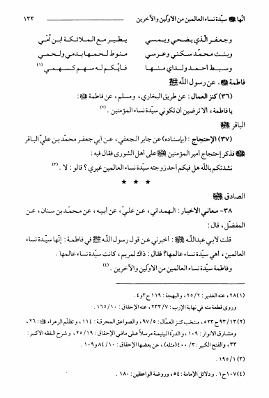 نام کتاب : عوالم العلوم و المعارف و الأحوال من الأيات و الأخبار و الأقوال ج11، سيدة النساء فاطمة الزهراء و مستدركاتها نویسنده : الشيخ عبدالله البحراني جلد : 1 صفحه : 133