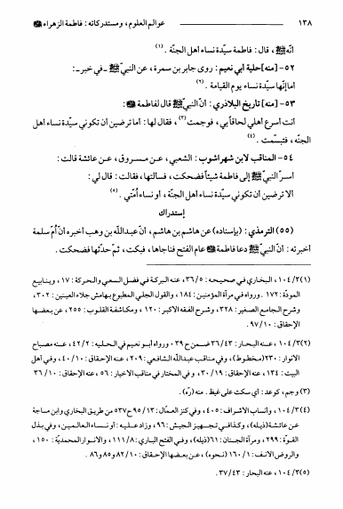 نام کتاب : عوالم العلوم و المعارف و الأحوال من الأيات و الأخبار و الأقوال ج11، سيدة النساء فاطمة الزهراء و مستدركاتها نویسنده : الشيخ عبدالله البحراني جلد : 1 صفحه : 138