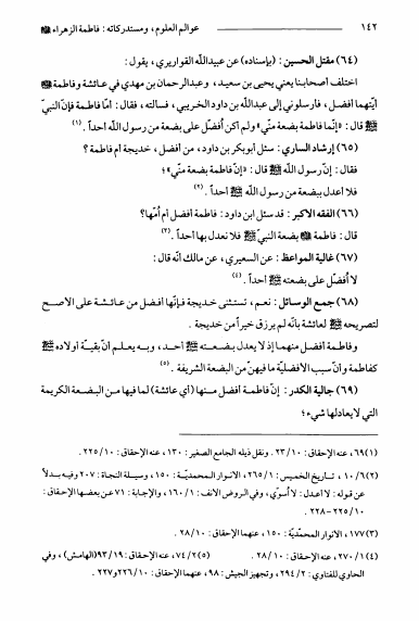 نام کتاب : عوالم العلوم و المعارف و الأحوال من الأيات و الأخبار و الأقوال ج11، سيدة النساء فاطمة الزهراء و مستدركاتها نویسنده : الشيخ عبدالله البحراني جلد : 1 صفحه : 142
