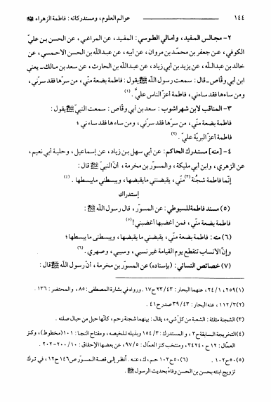 نام کتاب : عوالم العلوم و المعارف و الأحوال من الأيات و الأخبار و الأقوال ج11، سيدة النساء فاطمة الزهراء و مستدركاتها نویسنده : الشيخ عبدالله البحراني جلد : 1 صفحه : 144