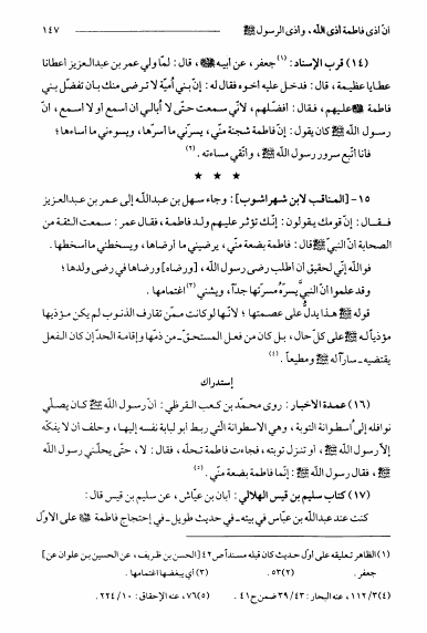 نام کتاب : عوالم العلوم و المعارف و الأحوال من الأيات و الأخبار و الأقوال ج11، سيدة النساء فاطمة الزهراء و مستدركاتها نویسنده : الشيخ عبدالله البحراني جلد : 1 صفحه : 147
