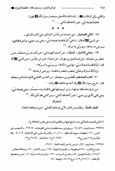 نام کتاب : عوالم العلوم و المعارف و الأحوال من الأيات و الأخبار و الأقوال ج11، سيدة النساء فاطمة الزهراء و مستدركاتها نویسنده : الشيخ عبدالله البحراني جلد : 1 صفحه : 148