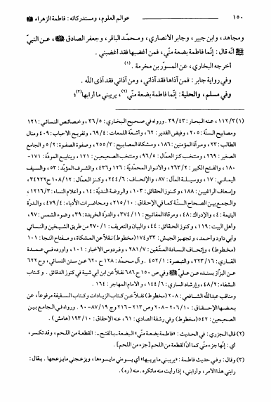 نام کتاب : عوالم العلوم و المعارف و الأحوال من الأيات و الأخبار و الأقوال ج11، سيدة النساء فاطمة الزهراء و مستدركاتها نویسنده : الشيخ عبدالله البحراني جلد : 1 صفحه : 150