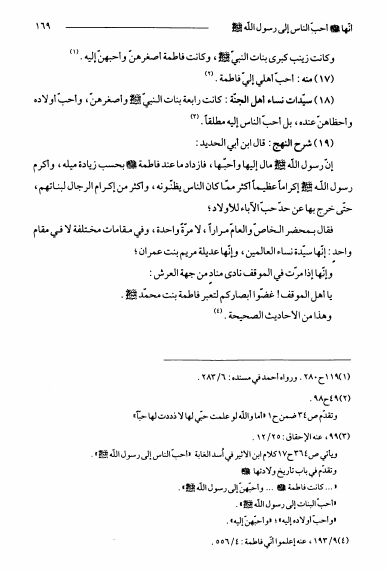 نام کتاب : عوالم العلوم و المعارف و الأحوال من الأيات و الأخبار و الأقوال ج11، سيدة النساء فاطمة الزهراء و مستدركاتها نویسنده : الشيخ عبدالله البحراني جلد : 1 صفحه : 169