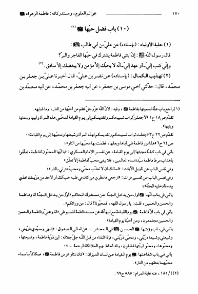 نام کتاب : عوالم العلوم و المعارف و الأحوال من الأيات و الأخبار و الأقوال ج11، سيدة النساء فاطمة الزهراء و مستدركاتها نویسنده : الشيخ عبدالله البحراني جلد : 1 صفحه : 170