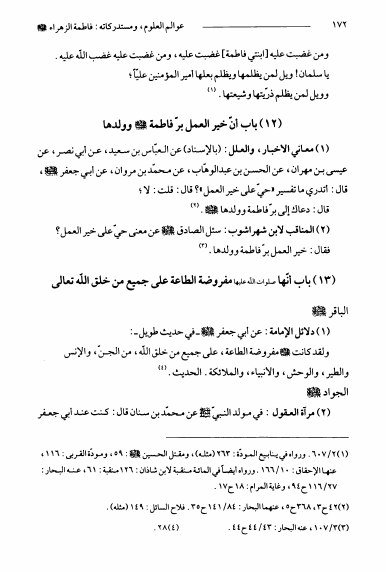 نام کتاب : عوالم العلوم و المعارف و الأحوال من الأيات و الأخبار و الأقوال ج11، سيدة النساء فاطمة الزهراء و مستدركاتها نویسنده : الشيخ عبدالله البحراني جلد : 1 صفحه : 172