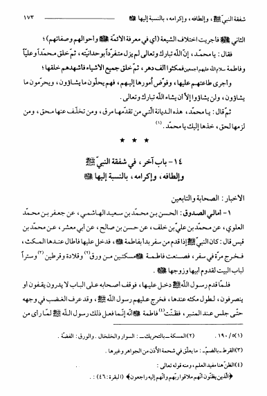 نام کتاب : عوالم العلوم و المعارف و الأحوال من الأيات و الأخبار و الأقوال ج11، سيدة النساء فاطمة الزهراء و مستدركاتها نویسنده : الشيخ عبدالله البحراني جلد : 1 صفحه : 173