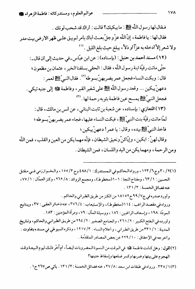 نام کتاب : عوالم العلوم و المعارف و الأحوال من الأيات و الأخبار و الأقوال ج11، سيدة النساء فاطمة الزهراء و مستدركاتها نویسنده : الشيخ عبدالله البحراني جلد : 1 صفحه : 178