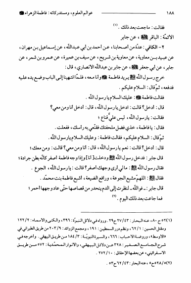 نام کتاب : عوالم العلوم و المعارف و الأحوال من الأيات و الأخبار و الأقوال ج11، سيدة النساء فاطمة الزهراء و مستدركاتها نویسنده : الشيخ عبدالله البحراني جلد : 1 صفحه : 188