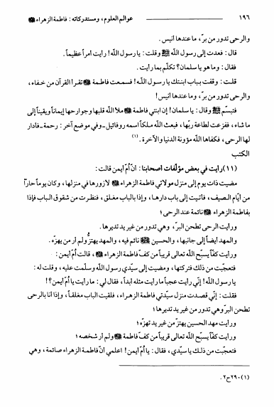 نام کتاب : عوالم العلوم و المعارف و الأحوال من الأيات و الأخبار و الأقوال ج11، سيدة النساء فاطمة الزهراء و مستدركاتها نویسنده : الشيخ عبدالله البحراني جلد : 1 صفحه : 196