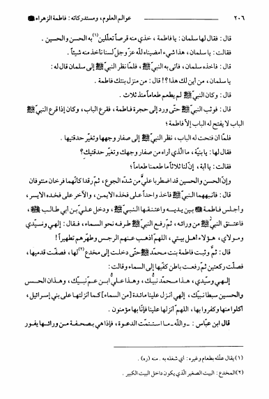 نام کتاب : عوالم العلوم و المعارف و الأحوال من الأيات و الأخبار و الأقوال ج11، سيدة النساء فاطمة الزهراء و مستدركاتها نویسنده : الشيخ عبدالله البحراني جلد : 1 صفحه : 206