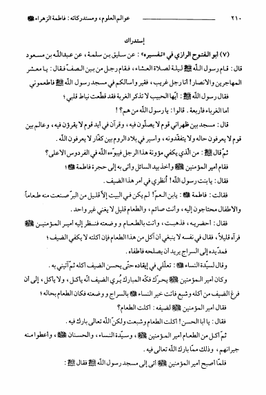 نام کتاب : عوالم العلوم و المعارف و الأحوال من الأيات و الأخبار و الأقوال ج11، سيدة النساء فاطمة الزهراء و مستدركاتها نویسنده : الشيخ عبدالله البحراني جلد : 1 صفحه : 210