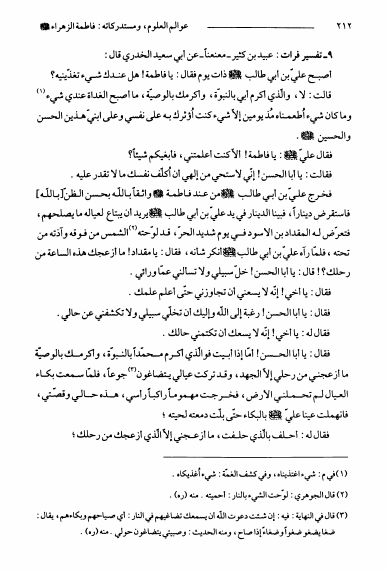 نام کتاب : عوالم العلوم و المعارف و الأحوال من الأيات و الأخبار و الأقوال ج11، سيدة النساء فاطمة الزهراء و مستدركاتها نویسنده : الشيخ عبدالله البحراني جلد : 1 صفحه : 212