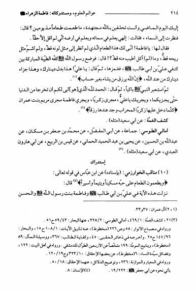 نام کتاب : عوالم العلوم و المعارف و الأحوال من الأيات و الأخبار و الأقوال ج11، سيدة النساء فاطمة الزهراء و مستدركاتها نویسنده : الشيخ عبدالله البحراني جلد : 1 صفحه : 214