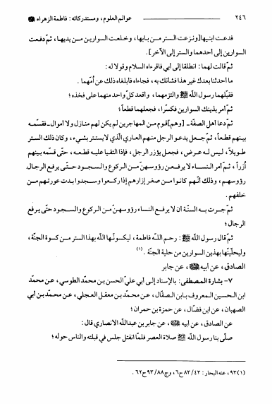 نام کتاب : عوالم العلوم و المعارف و الأحوال من الأيات و الأخبار و الأقوال ج11، سيدة النساء فاطمة الزهراء و مستدركاتها نویسنده : الشيخ عبدالله البحراني جلد : 1 صفحه : 246