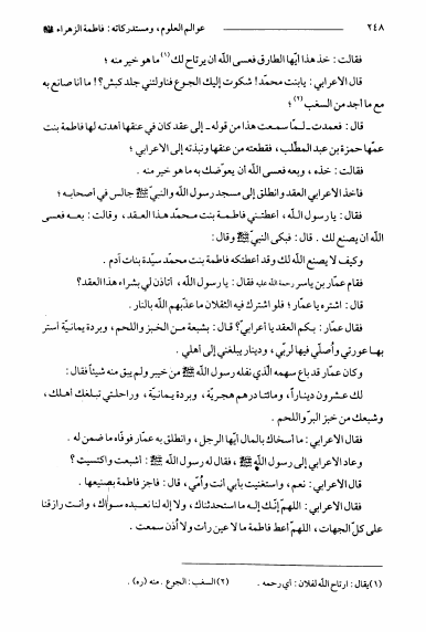 نام کتاب : عوالم العلوم و المعارف و الأحوال من الأيات و الأخبار و الأقوال ج11، سيدة النساء فاطمة الزهراء و مستدركاتها نویسنده : الشيخ عبدالله البحراني جلد : 1 صفحه : 248