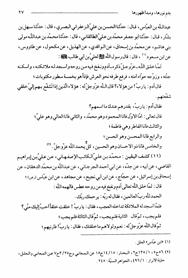 نام کتاب : عوالم العلوم و المعارف و الأحوال من الأيات و الأخبار و الأقوال ج11، سيدة النساء فاطمة الزهراء و مستدركاتها نویسنده : الشيخ عبدالله البحراني جلد : 1 صفحه : 27