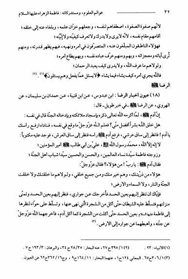 نام کتاب : عوالم العلوم و المعارف و الأحوال من الأيات و الأخبار و الأقوال ج11، سيدة النساء فاطمة الزهراء و مستدركاتها نویسنده : الشيخ عبدالله البحراني جلد : 1 صفحه : 32