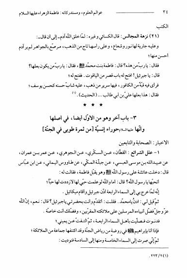 نام کتاب : عوالم العلوم و المعارف و الأحوال من الأيات و الأخبار و الأقوال ج11، سيدة النساء فاطمة الزهراء و مستدركاتها نویسنده : الشيخ عبدالله البحراني جلد : 1 صفحه : 34