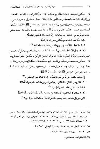 نام کتاب : عوالم العلوم و المعارف و الأحوال من الأيات و الأخبار و الأقوال ج11، سيدة النساء فاطمة الزهراء و مستدركاتها نویسنده : الشيخ عبدالله البحراني جلد : 1 صفحه : 38