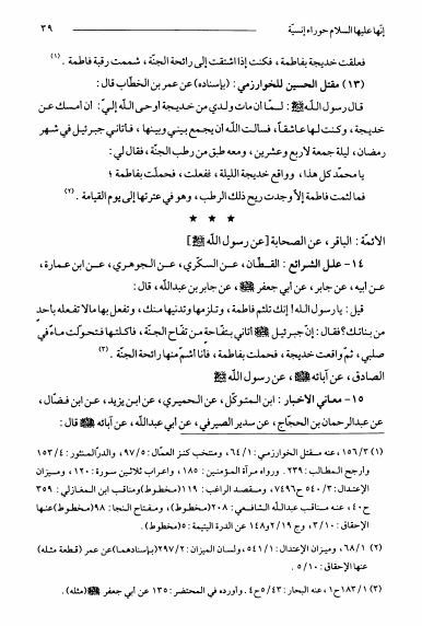 نام کتاب : عوالم العلوم و المعارف و الأحوال من الأيات و الأخبار و الأقوال ج11، سيدة النساء فاطمة الزهراء و مستدركاتها نویسنده : الشيخ عبدالله البحراني جلد : 1 صفحه : 39