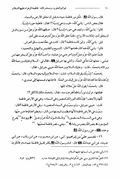 نام کتاب : عوالم العلوم و المعارف و الأحوال من الأيات و الأخبار و الأقوال ج11، سيدة النساء فاطمة الزهراء و مستدركاتها نویسنده : الشيخ عبدالله البحراني جلد : 1 صفحه : 40