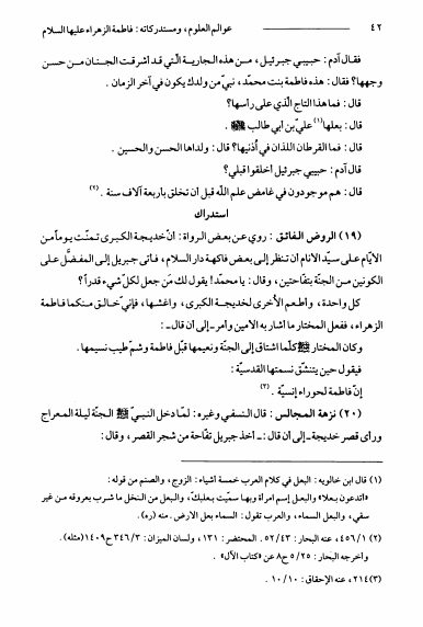 نام کتاب : عوالم العلوم و المعارف و الأحوال من الأيات و الأخبار و الأقوال ج11، سيدة النساء فاطمة الزهراء و مستدركاتها نویسنده : الشيخ عبدالله البحراني جلد : 1 صفحه : 42