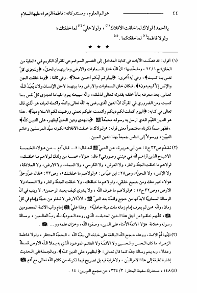 نام کتاب : عوالم العلوم و المعارف و الأحوال من الأيات و الأخبار و الأقوال ج11، سيدة النساء فاطمة الزهراء و مستدركاتها نویسنده : الشيخ عبدالله البحراني جلد : 1 صفحه : 44