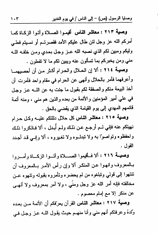 الوصايا - نصوص من القرآن الكريم ووصايا الرسول وأهل بيته وماروي عنهم
