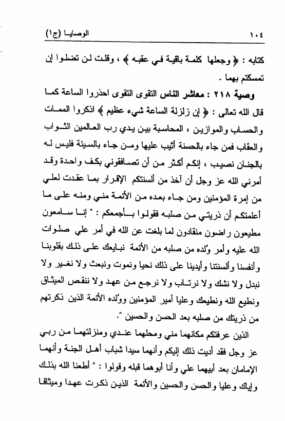 الوصايا - نصوص من القرآن الكريم ووصايا الرسول وأهل بيته وماروي عنهم