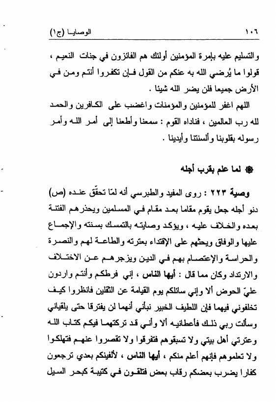الوصايا - نصوص من القرآن الكريم ووصايا الرسول وأهل بيته وماروي عنهم