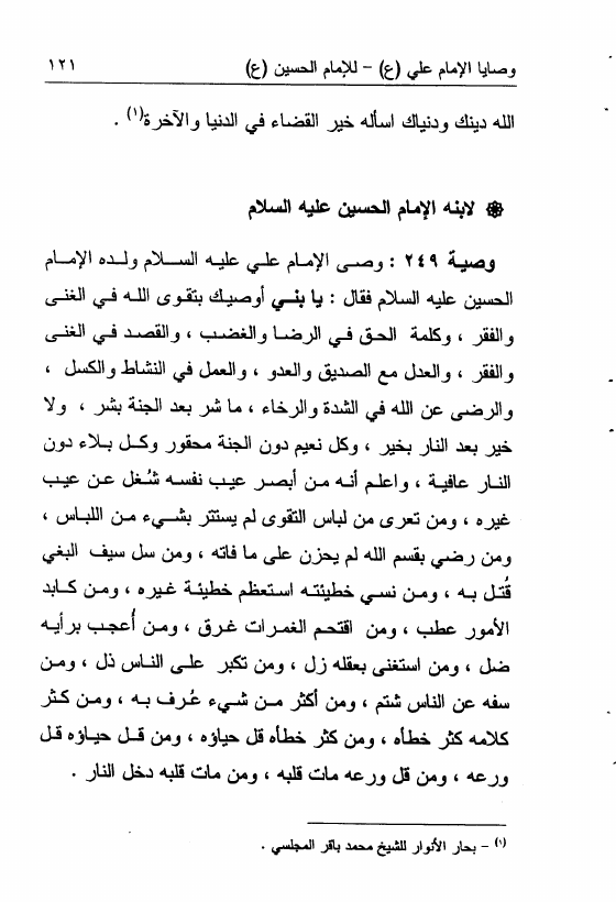 الوصايا - نصوص من القرآن الكريم ووصايا الرسول وأهل بيته وماروي عنهم