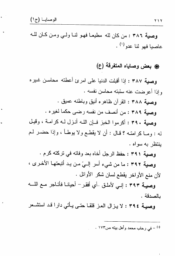 الوصايا - نصوص من القرآن الكريم ووصايا الرسول وأهل بيته وماروي عنهم
