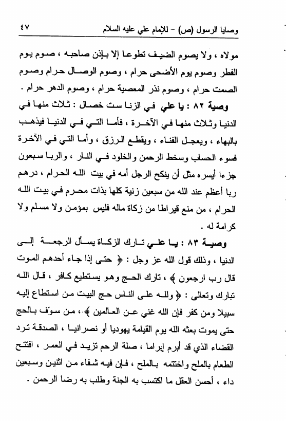 الوصايا - نصوص من القرآن الكريم ووصايا الرسول وأهل بيته وماروي عنهم