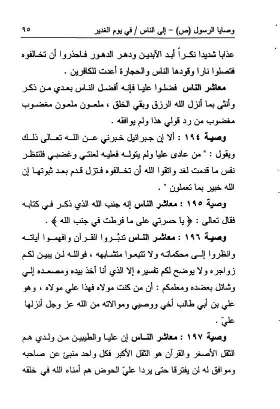 الوصايا - نصوص من القرآن الكريم ووصايا الرسول وأهل بيته وماروي عنهم