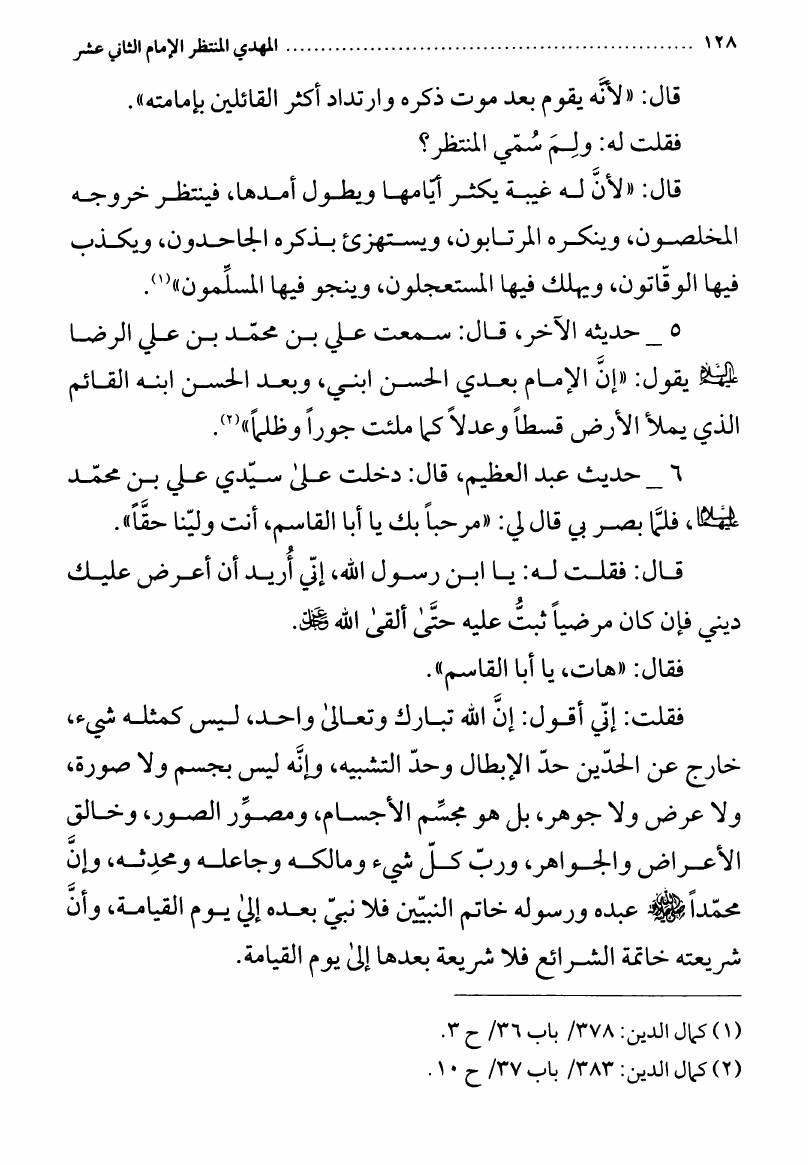 المهدي المنتظر (عجل الله فرجه الشريف) الإمام الثاني عشر
