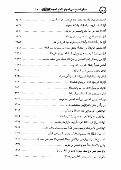 نام کتاب : عوالم العلوم والمعارف والأقوال، من الأيات والأخبار والأقوال، في أحوال الإمام الحجة بن الحسن المهدي ع - 5 أجزاء نویسنده : الشيخ عبدالله البحراني جلد : 5 صفحه : 138