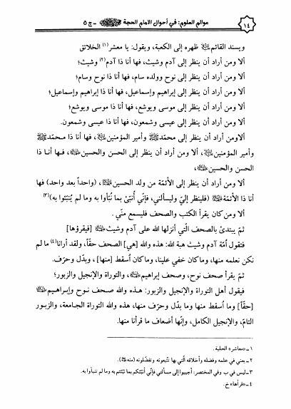 نام کتاب : عوالم العلوم والمعارف والأقوال، من الأيات والأخبار والأقوال، في أحوال الإمام الحجة بن الحسن المهدي ع - 5 أجزاء نویسنده : الشيخ عبدالله البحراني جلد : 5 صفحه : 14
