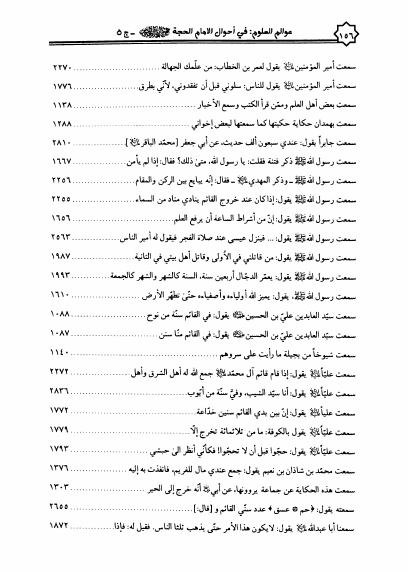 نام کتاب : عوالم العلوم والمعارف والأقوال، من الأيات والأخبار والأقوال، في أحوال الإمام الحجة بن الحسن المهدي ع - 5 أجزاء نویسنده : الشيخ عبدالله البحراني جلد : 5 صفحه : 156