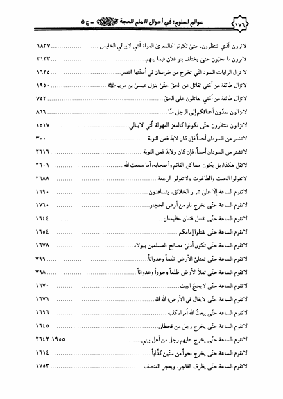 نام کتاب : عوالم العلوم والمعارف والأقوال، من الأيات والأخبار والأقوال، في أحوال الإمام الحجة بن الحسن المهدي ع - 5 أجزاء نویسنده : الشيخ عبدالله البحراني جلد : 5 صفحه : 176