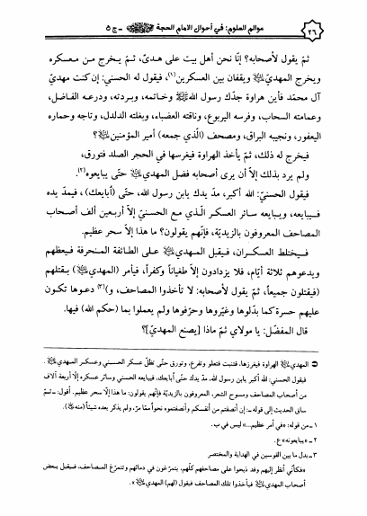 نام کتاب : عوالم العلوم والمعارف والأقوال، من الأيات والأخبار والأقوال، في أحوال الإمام الحجة بن الحسن المهدي ع - 5 أجزاء نویسنده : الشيخ عبدالله البحراني جلد : 5 صفحه : 26