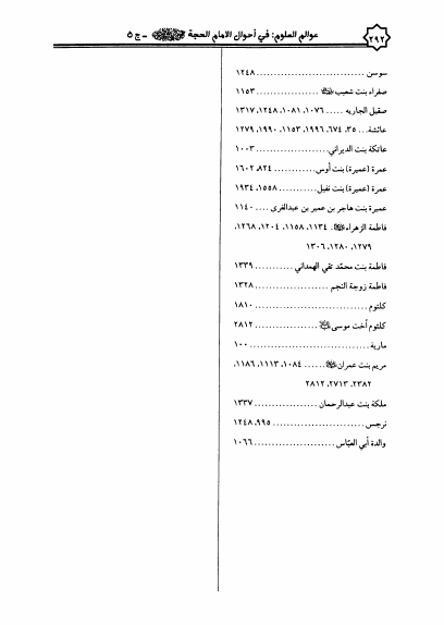 نام کتاب : عوالم العلوم والمعارف والأقوال، من الأيات والأخبار والأقوال، في أحوال الإمام الحجة بن الحسن المهدي ع - 5 أجزاء نویسنده : الشيخ عبدالله البحراني جلد : 5 صفحه : 292