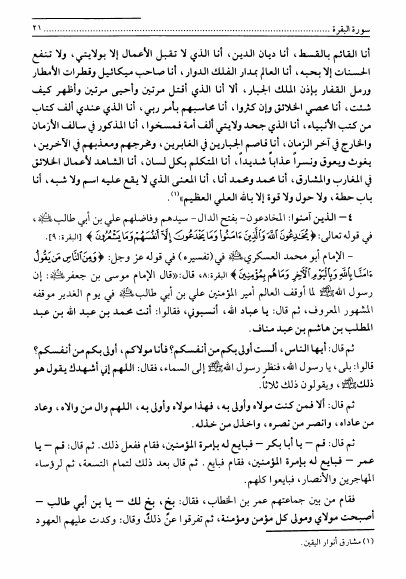 نام کتاب : ا?لف ا?ية نزلت في الا?مام علي المسمى باللوامع النورانية ، في ا?سماء علي وا?هل بيته القرا?نية نویسنده : السيد هاشم البحراني جلد : 1 صفحه : 21