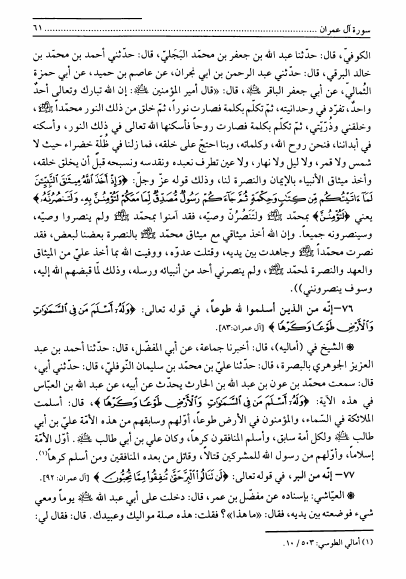 نام کتاب : ا?لف ا?ية نزلت في الا?مام علي المسمى باللوامع النورانية ، في ا?سماء علي وا?هل بيته القرا?نية نویسنده : السيد هاشم البحراني جلد : 1 صفحه : 61