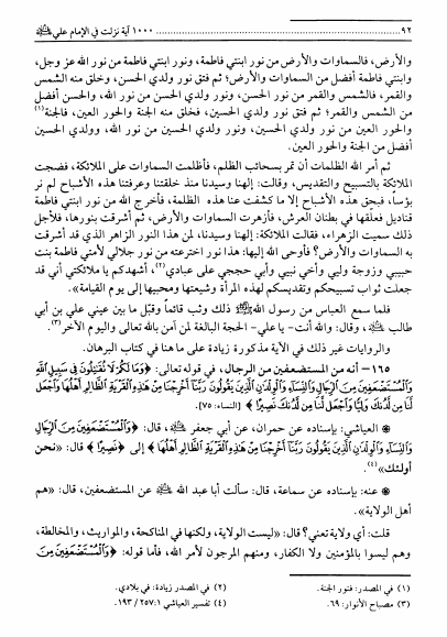 نام کتاب : ا?لف ا?ية نزلت في الا?مام علي المسمى باللوامع النورانية ، في ا?سماء علي وا?هل بيته القرا?نية نویسنده : السيد هاشم البحراني جلد : 1 صفحه : 92