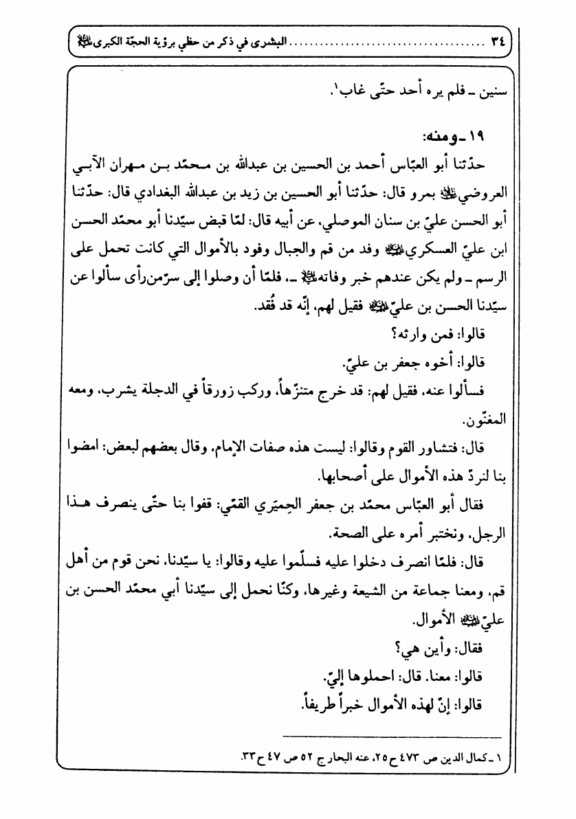 البشرى في ذكرى من حظي برؤية الحجة الكبرى (عجل الله فرجه الشريف)