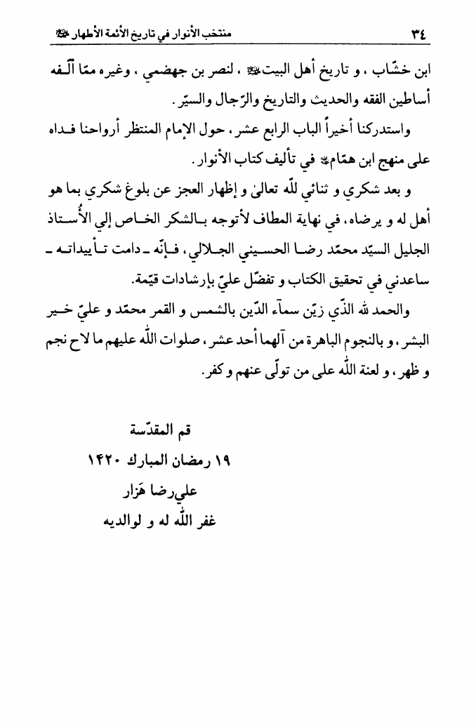 منتخب الأنوار ، في تاريخ الأئمة الأطهار (عليهم السلام)