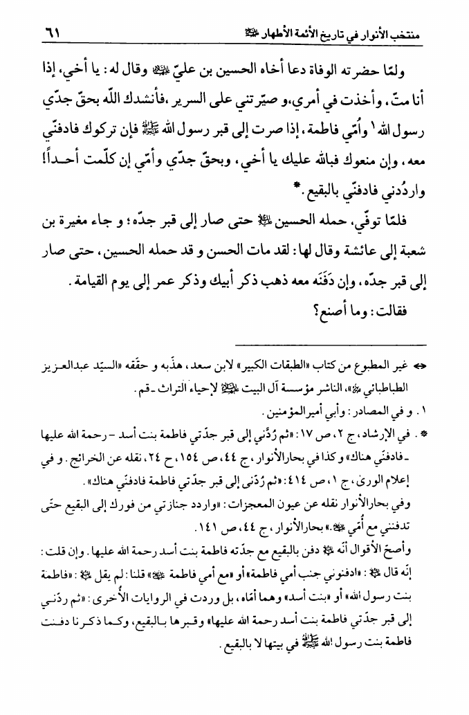 منتخب الأنوار ، في تاريخ الأئمة الأطهار (عليهم السلام)