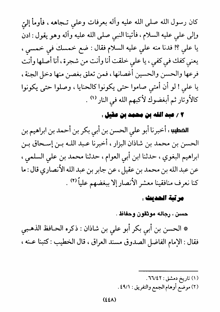 نام کتاب : سلسلة الأحاديث المتواترة، في النص على الإمام علي عليه السلام برواية أهل السنة والجماعة - 3 أجزاء نویسنده : الشيخ أحمد الماحوزي جلد : 1 صفحه : 448